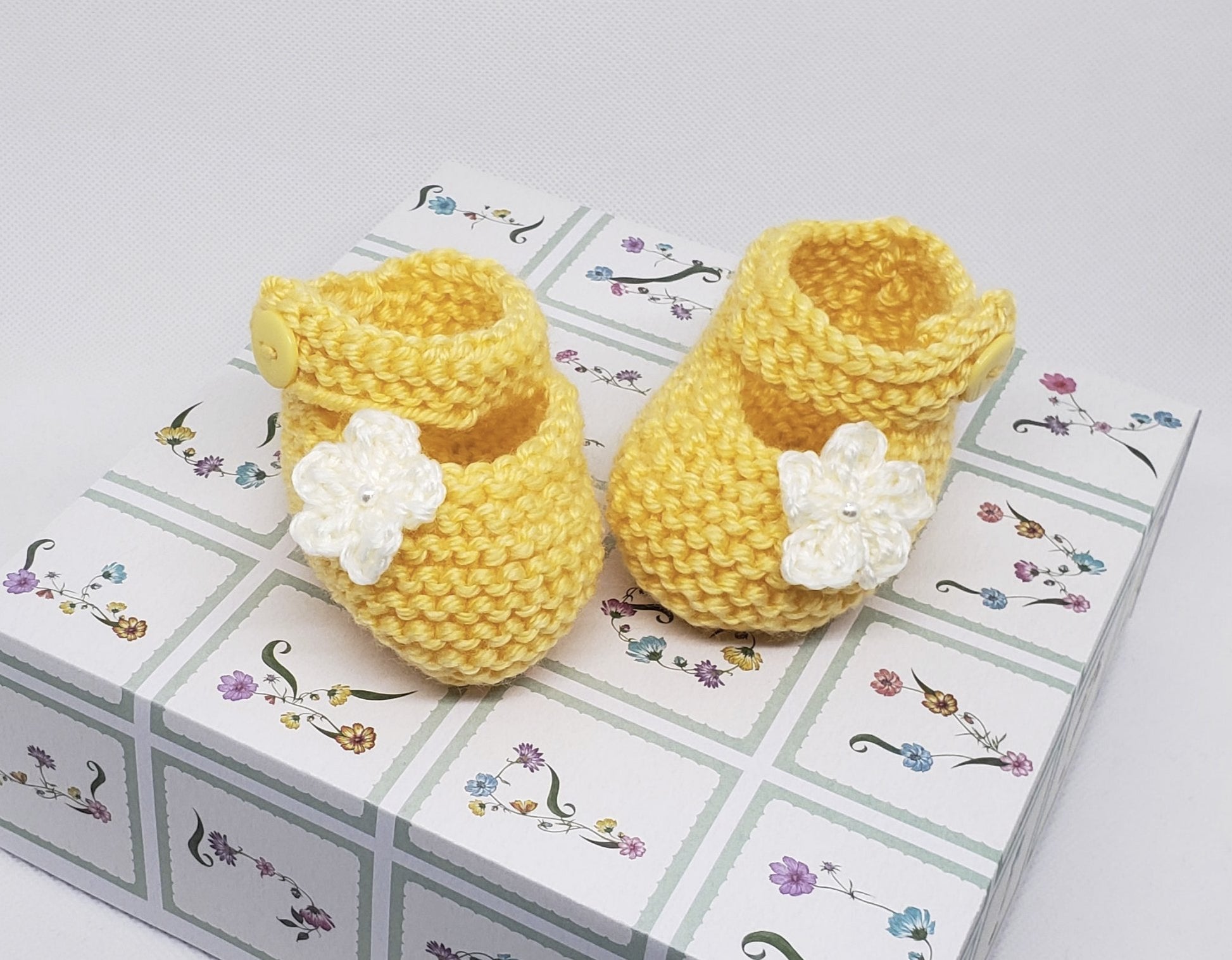 Yellow Baby Booties with Flower